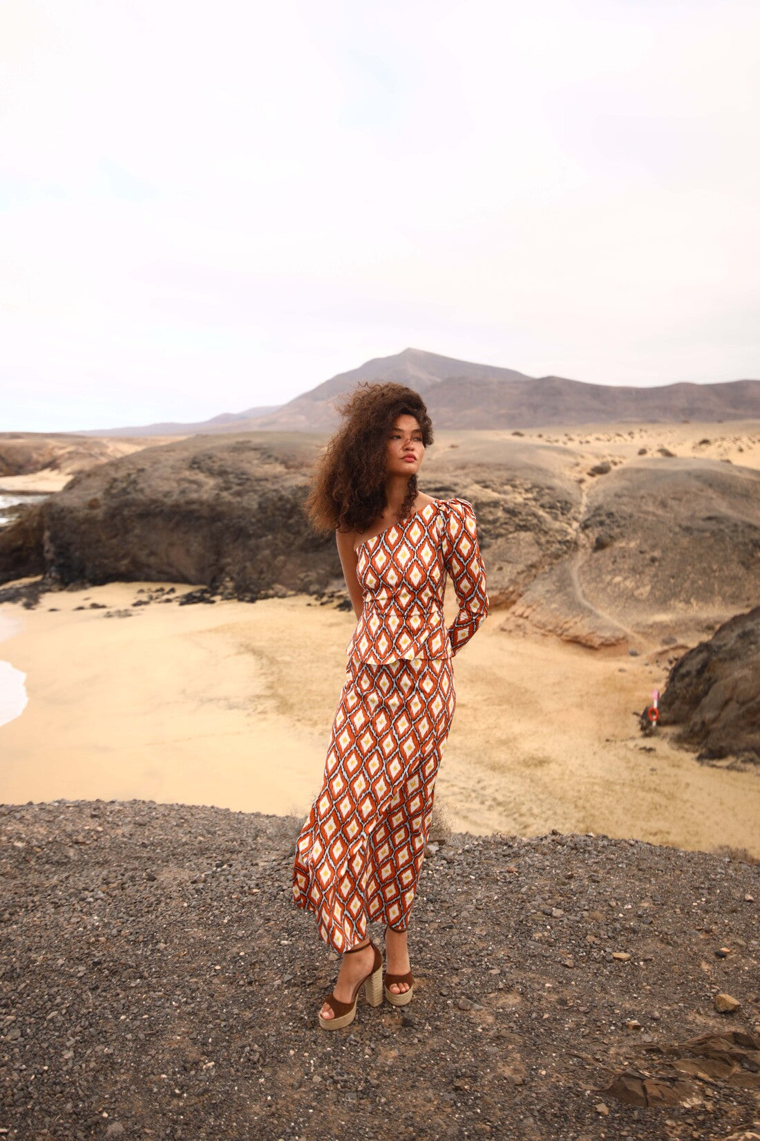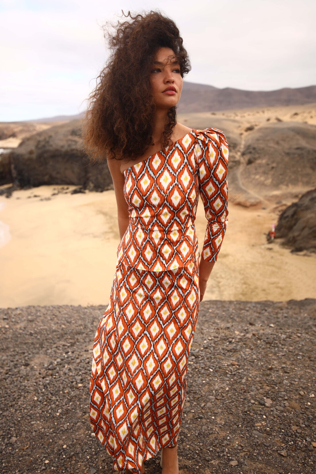 Su estampado en tendencia, te hará ser la invitada estrella de cualquier evento. El cierre del vestido se encuentra en la costura central de espalda gracias a una cremallera oculta a tono.