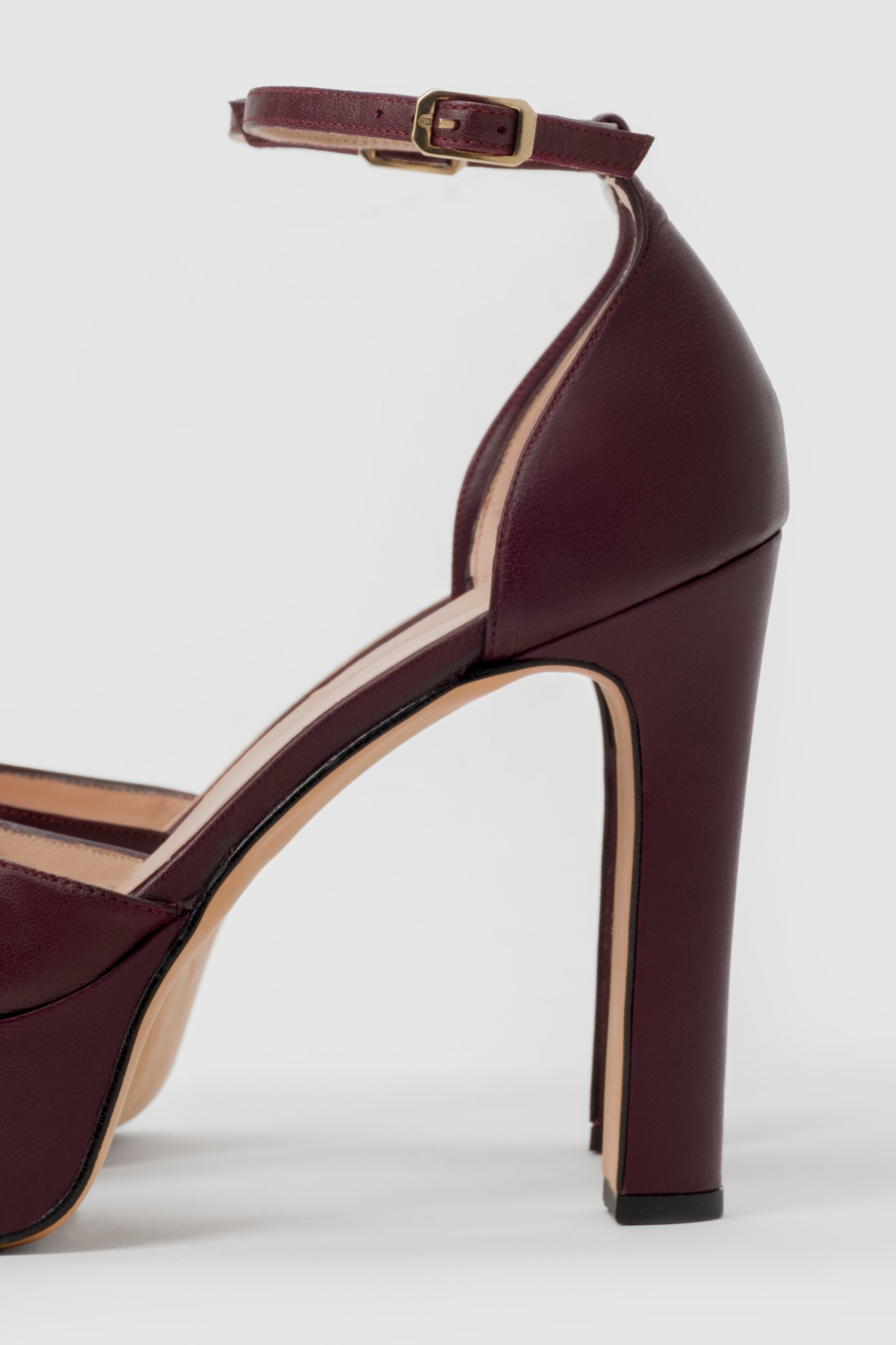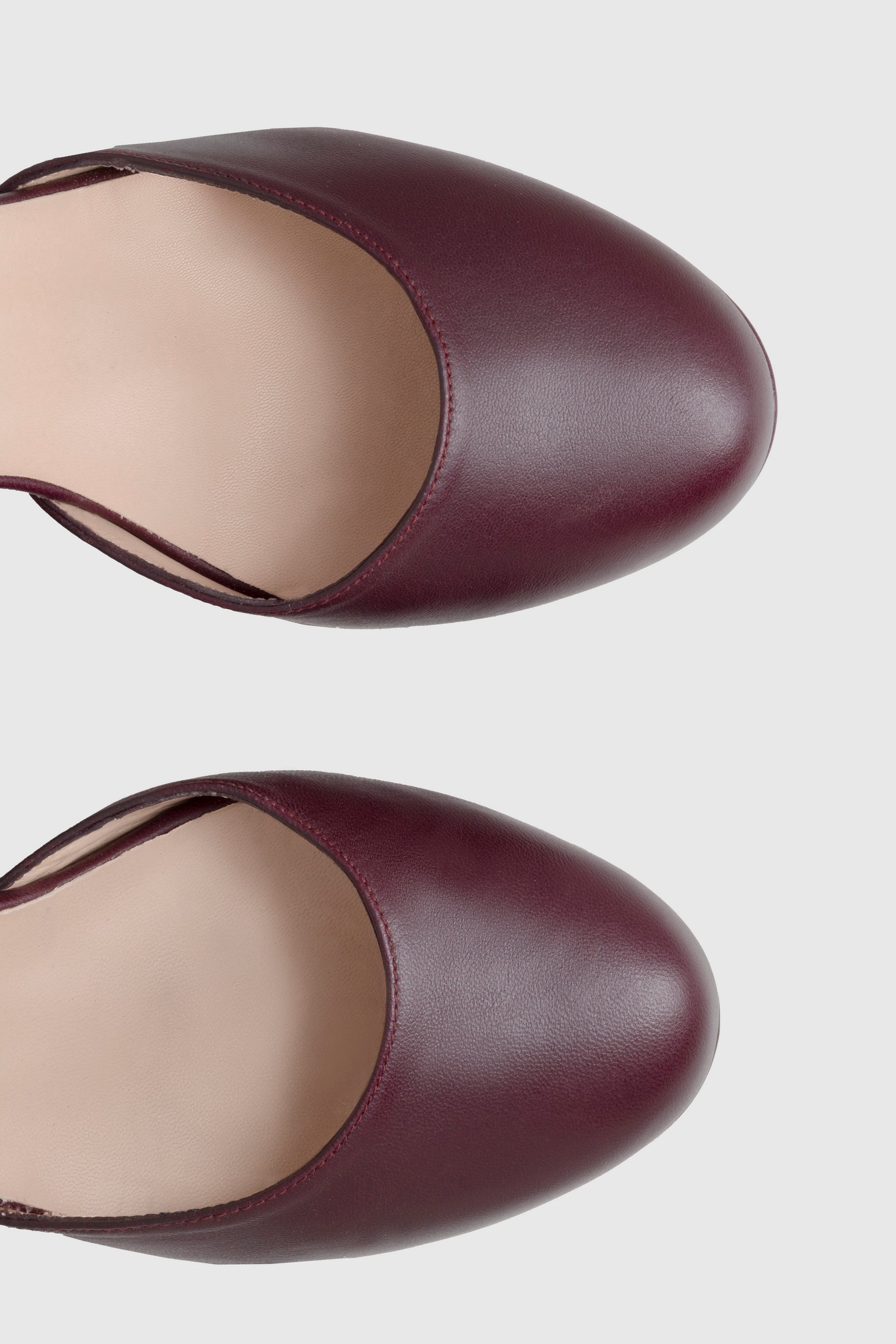 El zapato de tacón Collete en burdeos es perfecto si buscas el tacón cerrado más cómodo para tu próximo evento.