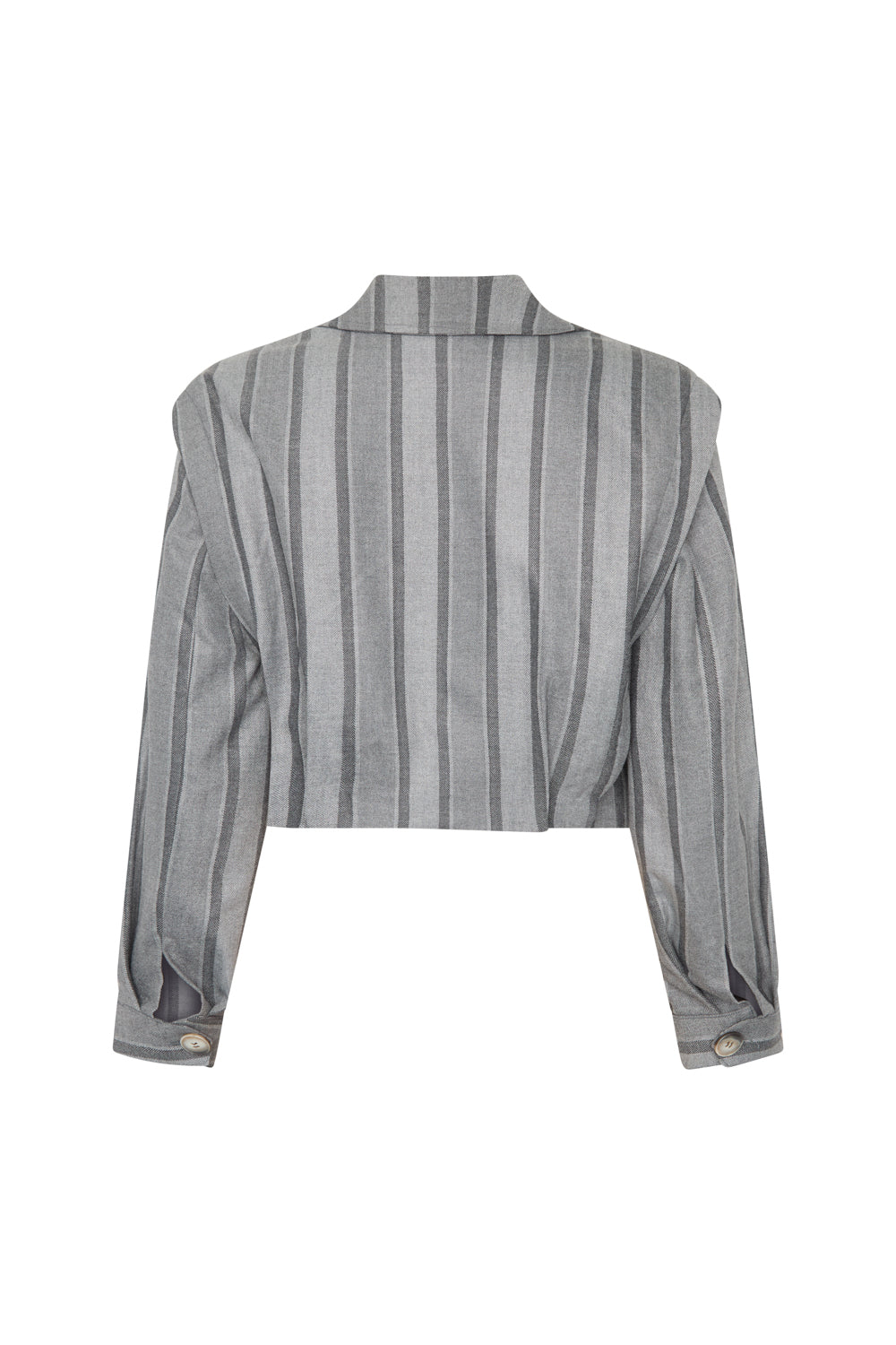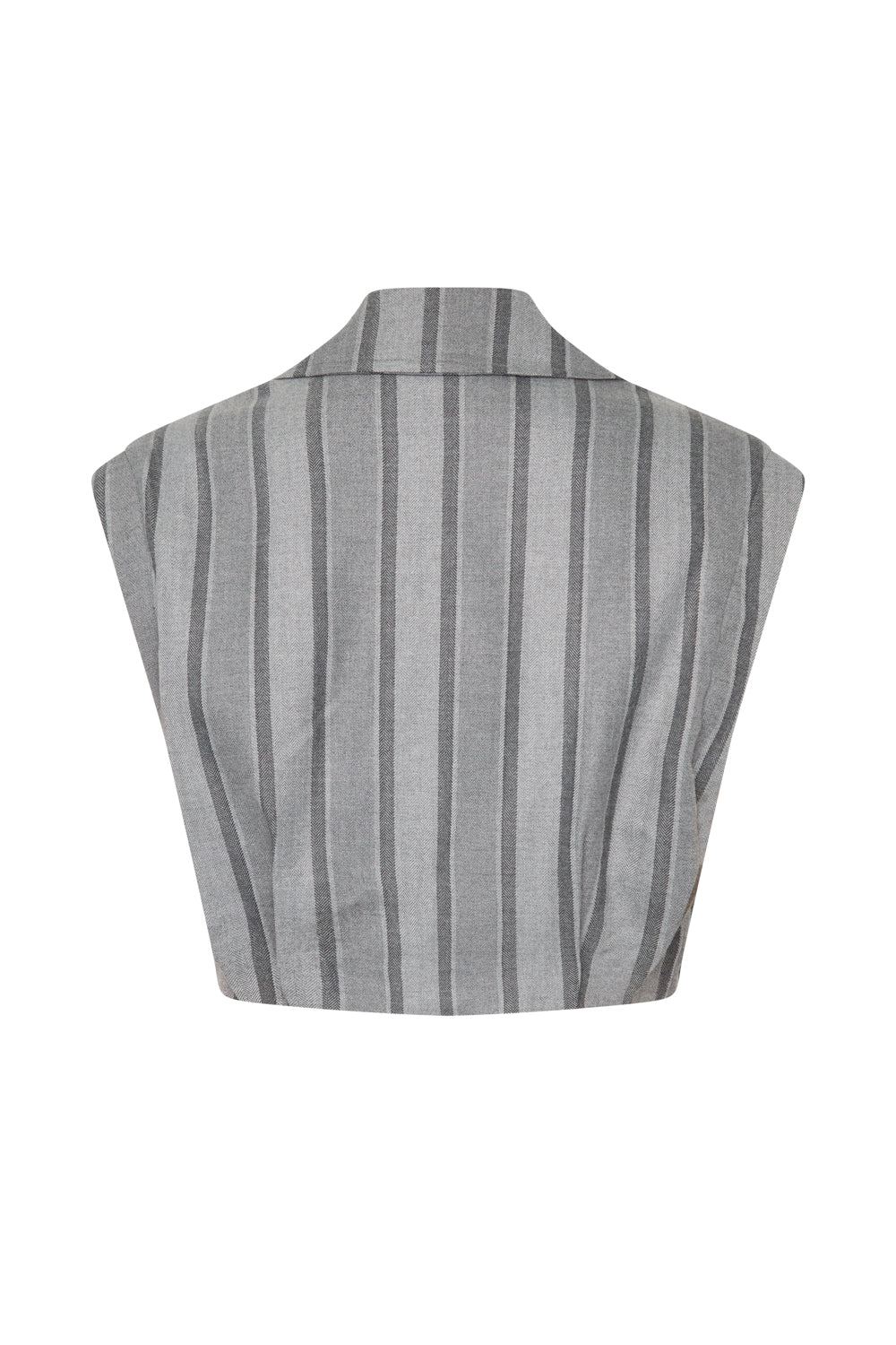 Chaqueta tipo cropped de mangas desmontables con cierre delantero de botones.