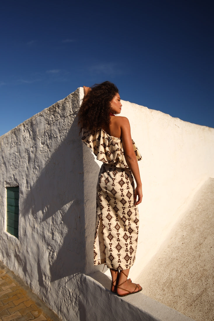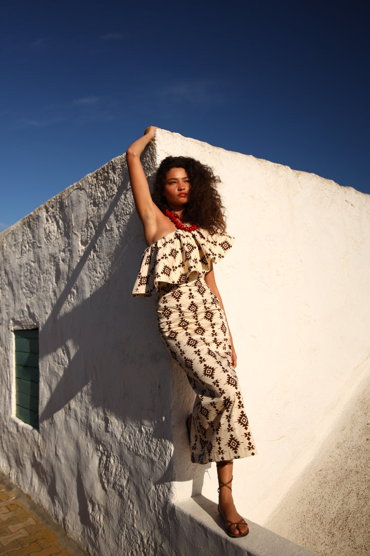 El Conjunto Bequia Chocolate es uno de los looks más especiales de nuestra colección, perfecto para eventos tanto de día como de noche.